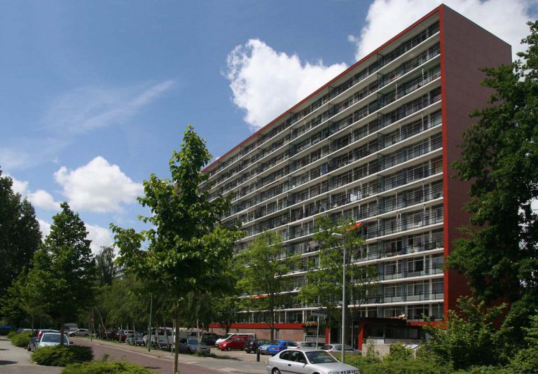 De twee hoogbouwcomplexen ‘Fazant’ en ‘Aalscholver’ uit de jaren 70 waren toe aan onderhoud en revitalisatie. Ons doel was de complexen meer tot een eenheid te smeden, en ze te voorzien van een representatieve en ruime entree. Tegelijk met deze ingreep vond groot onderhoud aan de gevels plaats en werden de galerijen op geplust. De grootste uitdaging was het vernieuwen van toilet, badkamer en leidingschacht in de bewoonde woningen in maximaal twintig werkdagen per schacht.