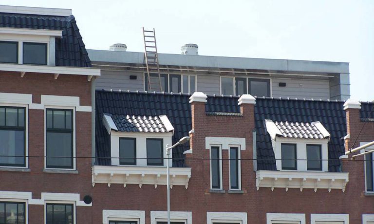 Vanwege het omvangrijke programma is er ruimte gecreëerd binnen de contouren van het gebouw. De zolderverdieping en het dak boven twee van de drie panden is daartoe gesloopt en vervangen door twee verdiepingen houtskeletbouw. Door de bovenste verdieping terug te leggen ontstaat een ruim dakterras aan de voorzijde. Doordat hier het dakvlak doorloopt als borstwering blijft de monumentale voorgevel intact. Aan de achterzijde is de opbouw juist expressief.