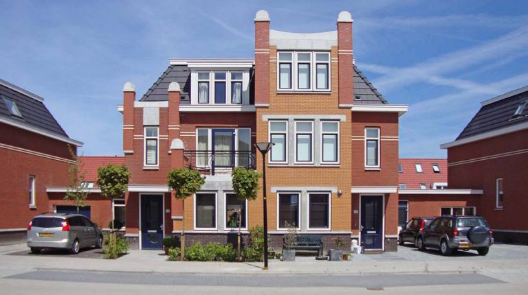 Het uiterlijk van de rijwoningen verwijst naar dat van vroeg 20e eeuwse stedelijke bebouwing en bevat Art Deco elementen. De twee onder een kap woningen zijn geënt op villabebouwing uit de Art Nouveau periode terwijl het ovaal meer klassieke elementen kent. Door stilistisch nauwkeurige detaillering, het toepassen van verschillende kleuren metselwerk en het gebruik van stijl gebonden ornamenten ontstaat een sfeer die telkens kenmerkend is voor de gekozen stijlperiode.