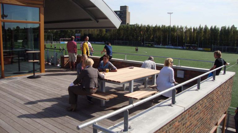Samen met architect Sunil Bahadoersing verwierven wij in 2009 de opdracht voor het ontwerpen van een duurzaam sportgebouw voor de Vlaardingsche Football Club. Op een smalle locatie tussen het hoofdveld en de openbare weg, biedt een langgerekt gebouw ruimte aan twaalf kleedkamers, kantine, kantoren en een tribune voor 300 toeschouwers. Het gebogen Calzip dak opent zich naar het veld en verbindt alle functies in één groot gebaar.