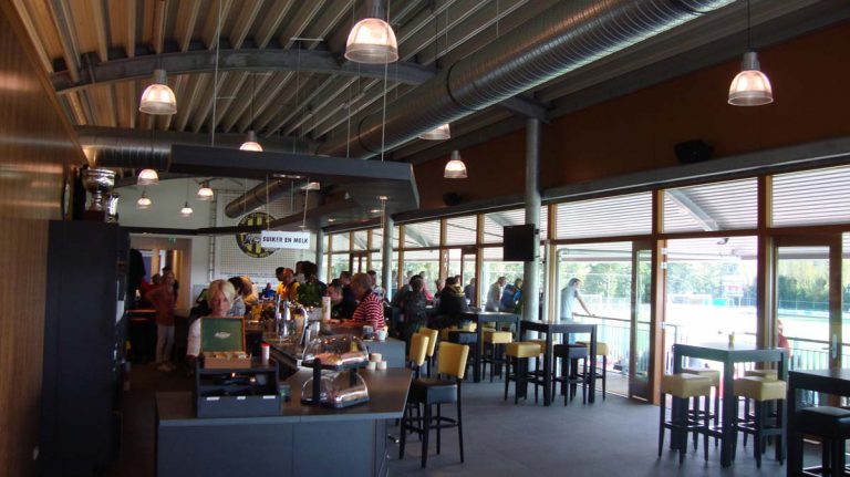 12 kleedkamers, kantine, tribune, kantoren